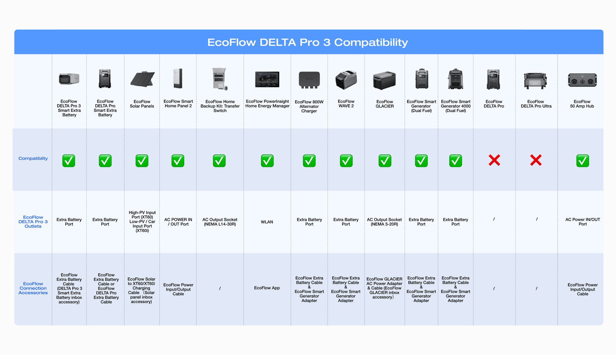 4000W,6000W(X-Boost): Supports up to two DELTA Pro 3 Smart Extra Batteries / DELTA Pro Smart Extra Batteries