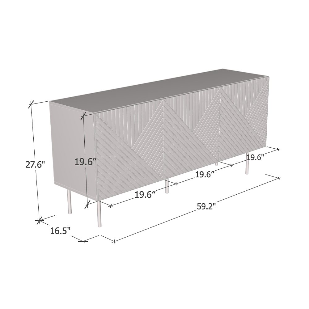 Dimensions: At 27.6 inches in height, 59.2 inches in width, and 16.5 inches in depth, it provides ample storage without overwhelming your space.