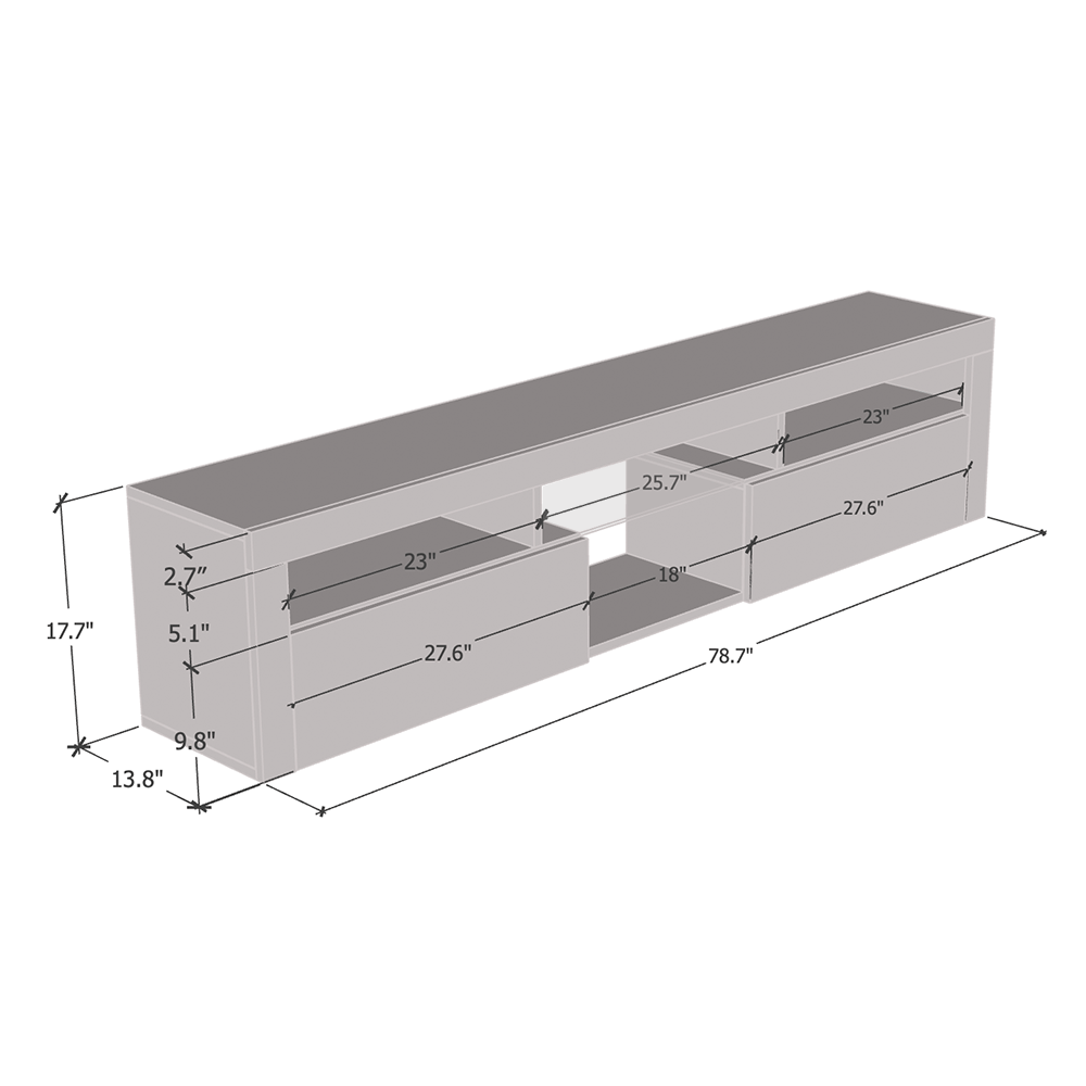 - Dimensions: 17.7 inches height x 78.7 inches width x 13.8 inches depth