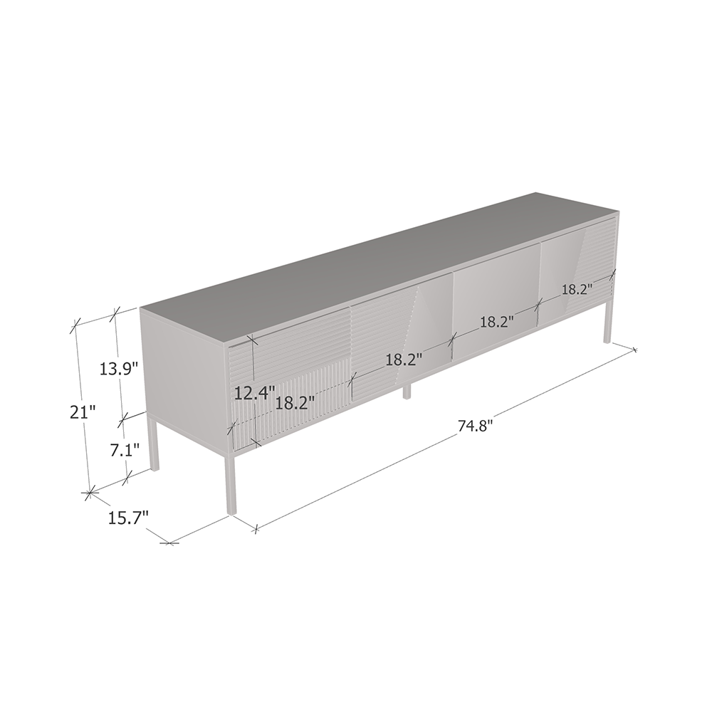 - Dimensions: 21 inches height x 74.8 inches width x 15.7 inches depth