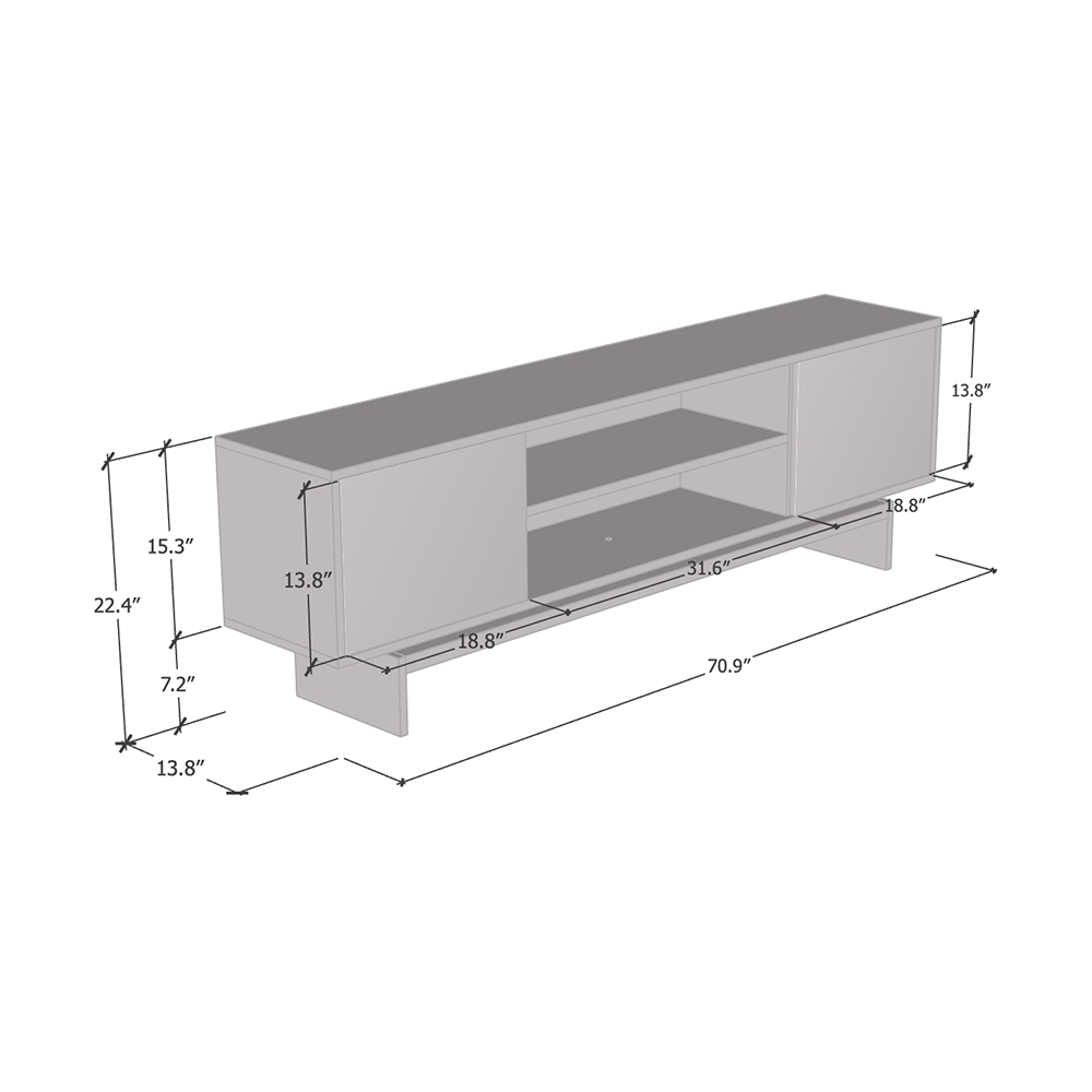- Dimensions: 22.4 inches height x 70.9 inches width x 13.8 inches depth