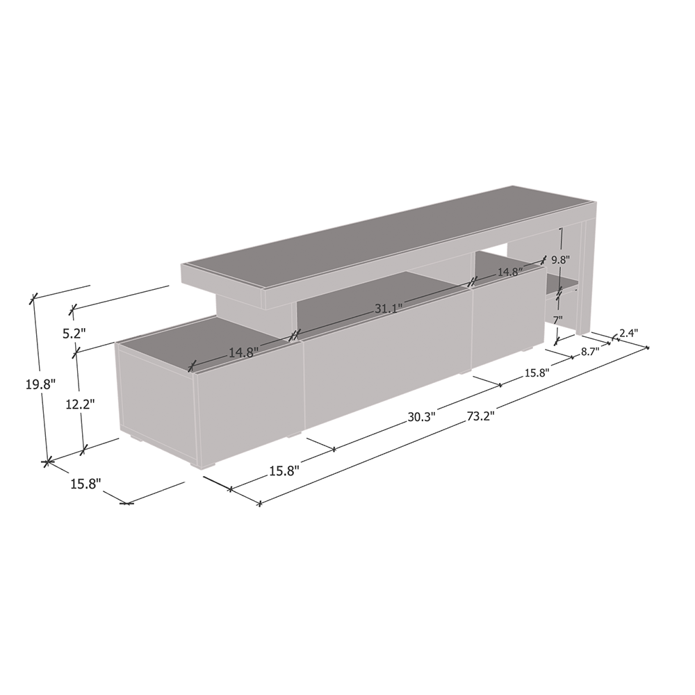 - Dimensions: 20 inches height x 73 inches width x 15.75 inches depth