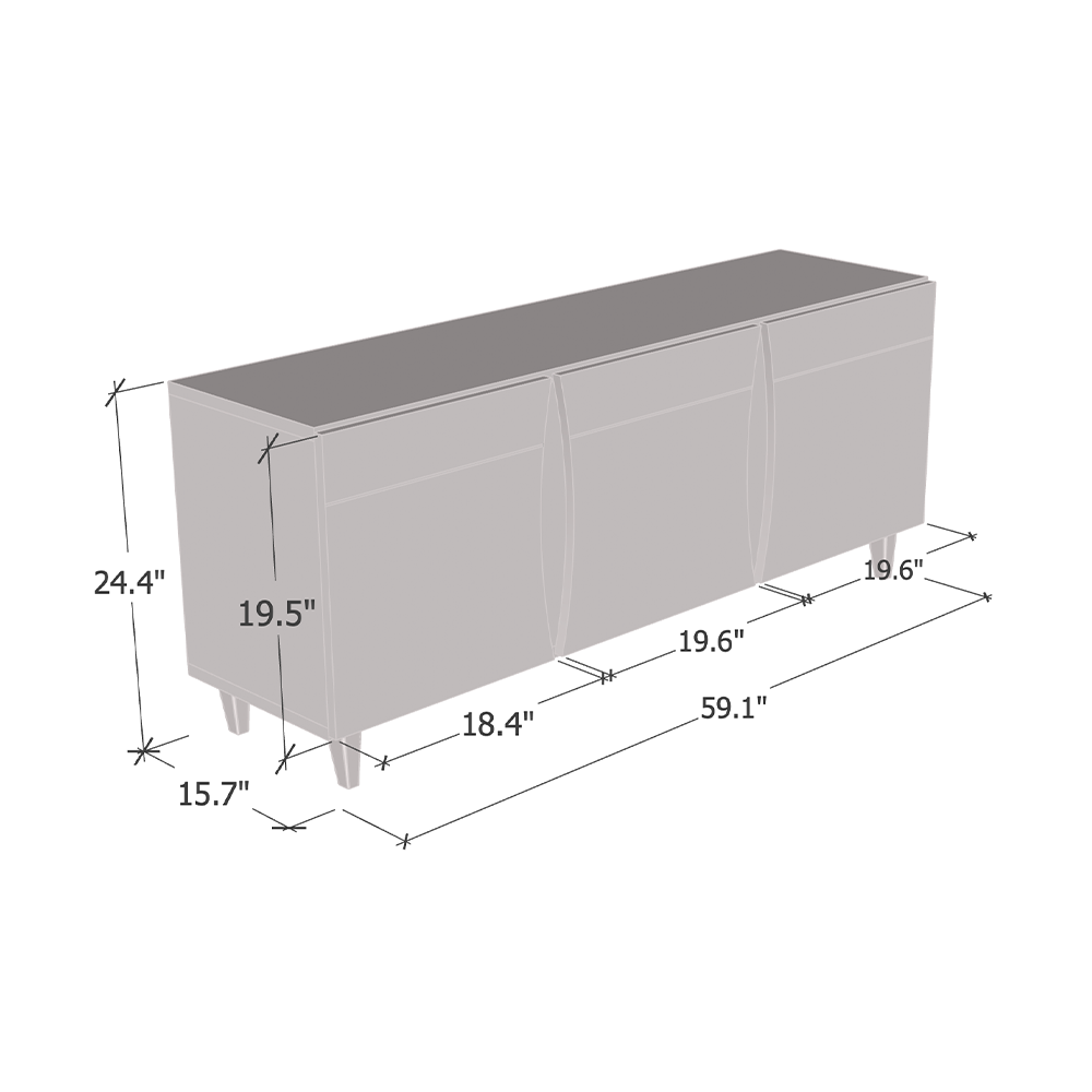 • Dimensions: 24.4 inches height x 59.1 inches width x 15.7 inches depth