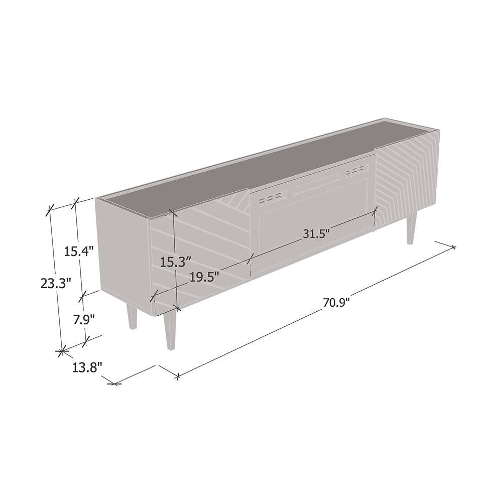 - Dimensions: 23.3 inches height x 70.9 inches width x 13.8 inches depth