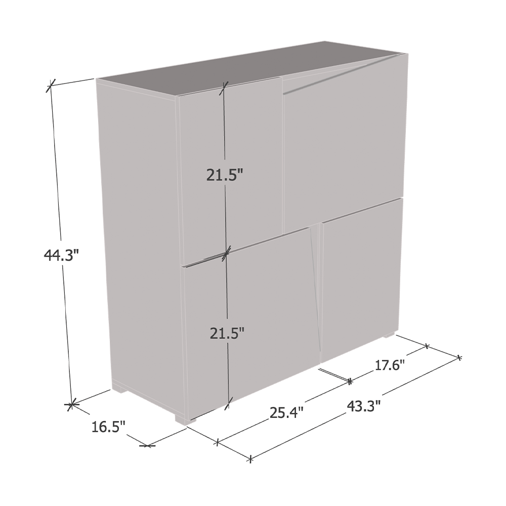 - Dimensions: 44.3 inches height x 43.3 inches width x 16.5 inches depth