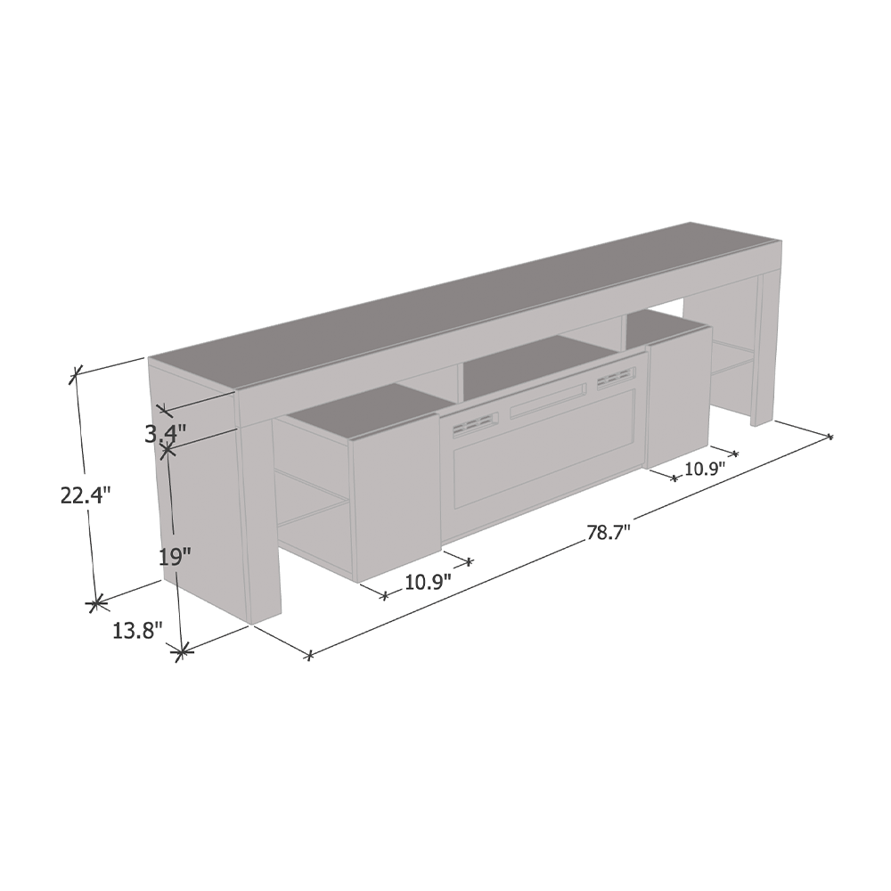 - Dimensions:Â 22.4 inches height x 78.7 inches width x 13.8 inches depth